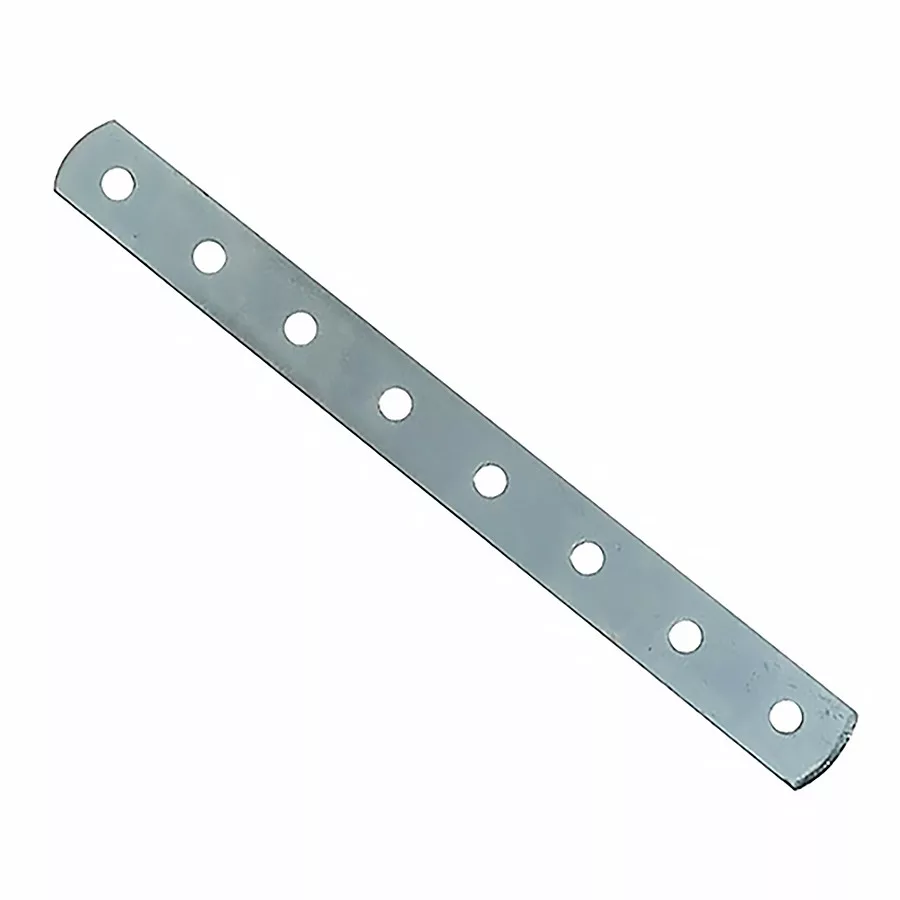 Erős összekötő lemez lekerekített véggelMéret: 300x20 mm4 mm vastag lemez8x ∅6 mm furatHorganyzott