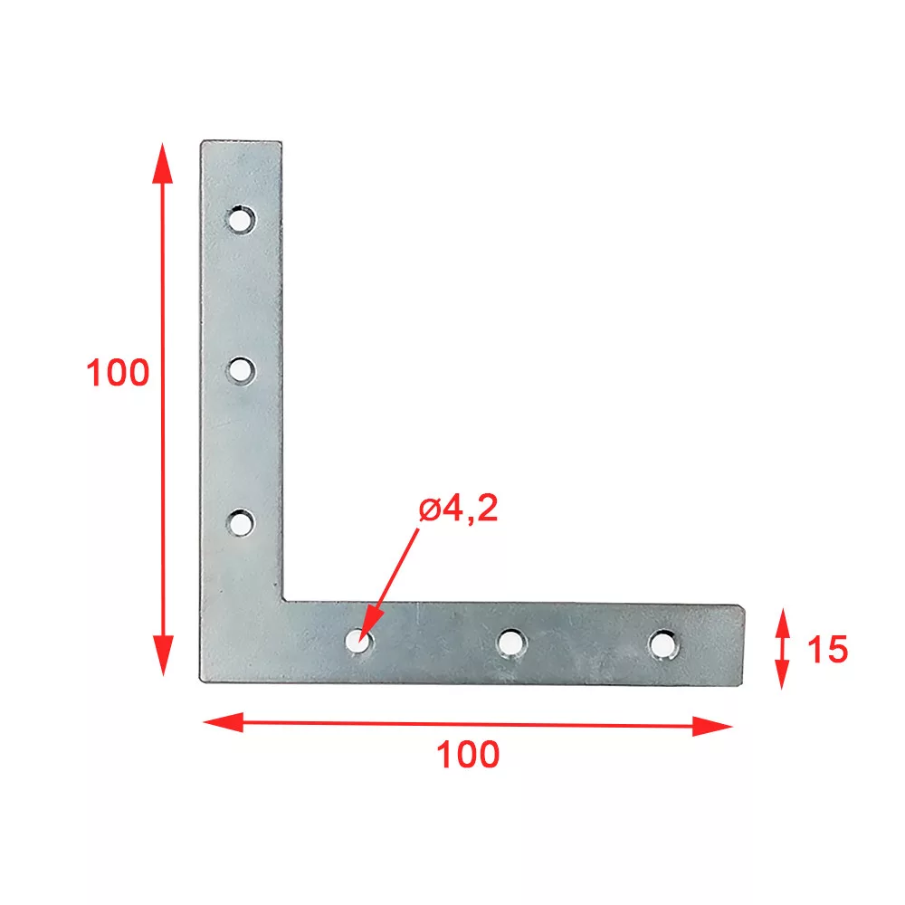 Ablakszegletvas 100x100x15 mm1,5 mm vastag lemez6x ∅4,2 mm furatHorganyzott