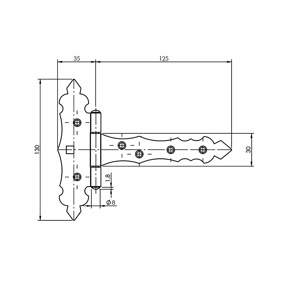 Alaplemez szélesség: 35 mmPánt szélesség: 125 mmAlaplemez magasság: 130 mmPánt magasság: 30 mmLemezvastagság: 2 mm