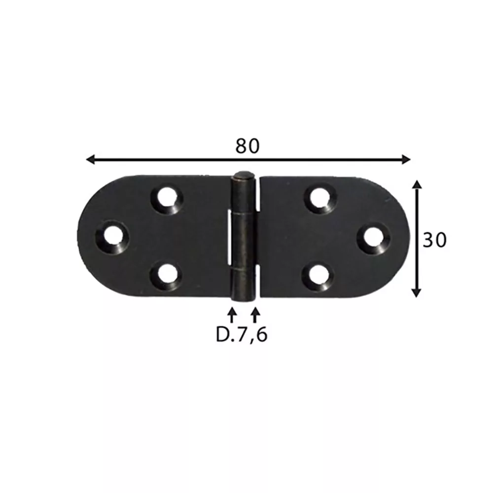 Csuklópánt, kerekített 80x30 mm1,8 mm vtg, fekete porfestett felület