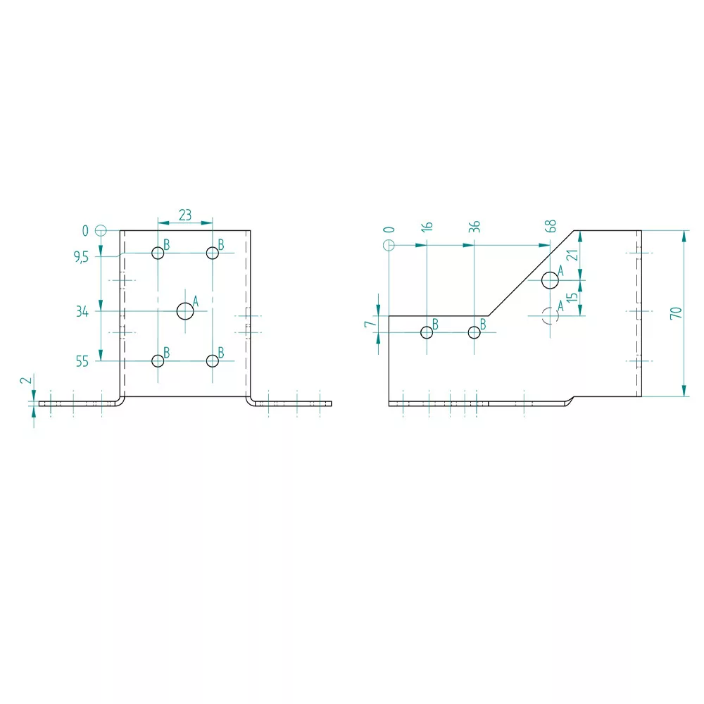 Furatok:∅5 mm: 16 db∅7 mm: 5 db∅11 mm: 2 db