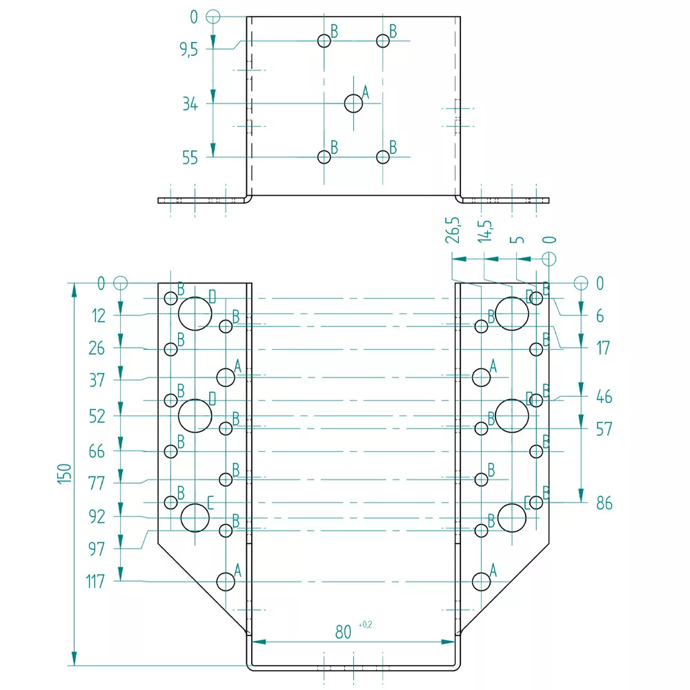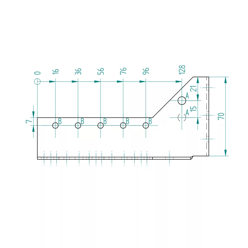 Furatok:∅5 mm: 32 db∅7 mm: 7 db∅11 mm: 2 db∅13 mm: 4 db