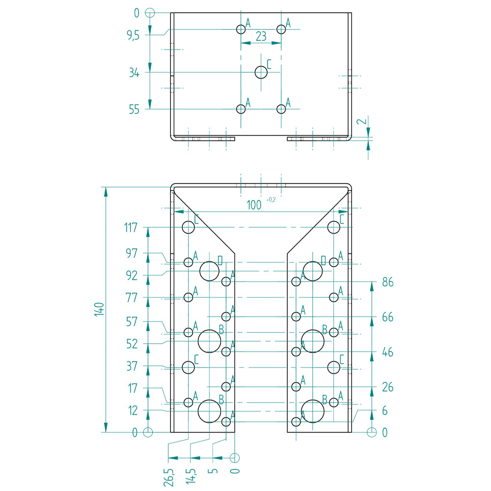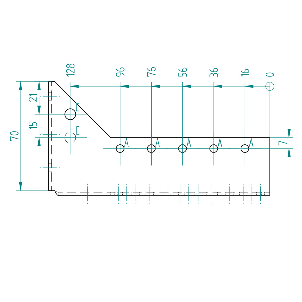 Furatok:∅5 mm: 32 db∅7 mm: 7 db∅11 mm: 2 db∅13 mm: 4 db