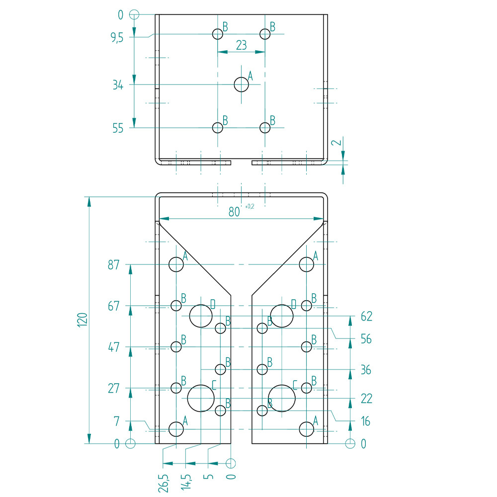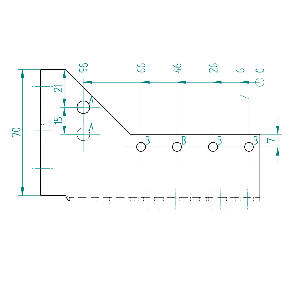 Furatok:∅5 mm: 24 db∅7 mm: 7 db∅11 mm: 2 db∅13 mm: 2 db