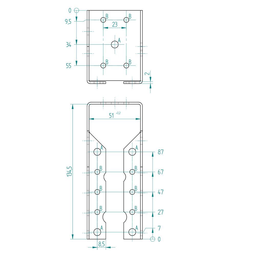Furatok:∅5 mm: 18 db∅7 mm: 7 db