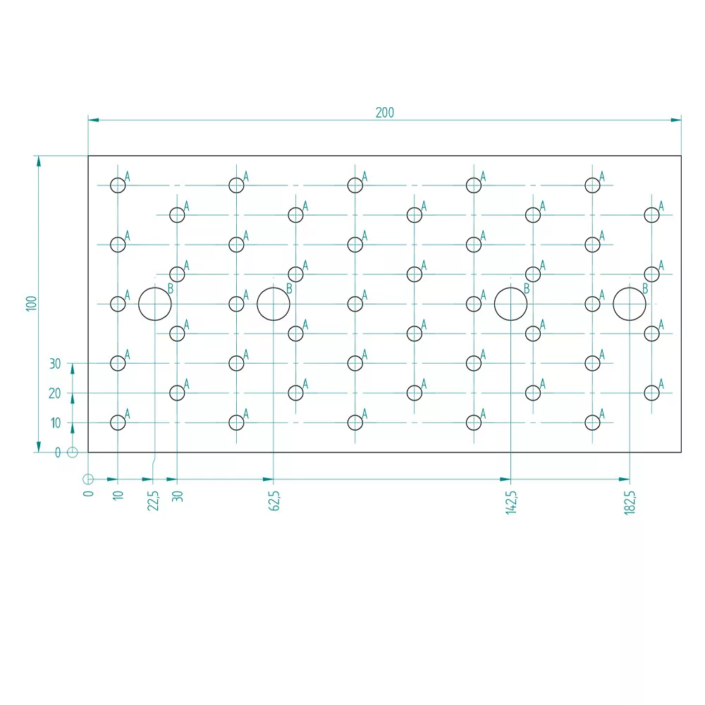 Furatok:∅5 mm: 45 db∅11 mm: 4 db