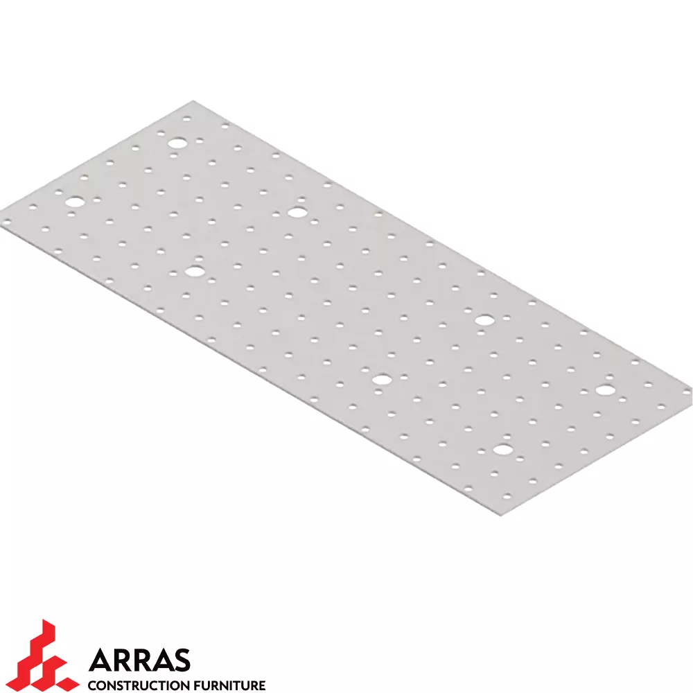 Lapos összekötőlemez kétféle furattal szegekhez és nagyobb csavarokhozSzélesség: 160 mmHossz: 400 mmLemez vastagság: 2 mmAnyag: HDG DX51D Z275 acélTűzihorganyzott felület