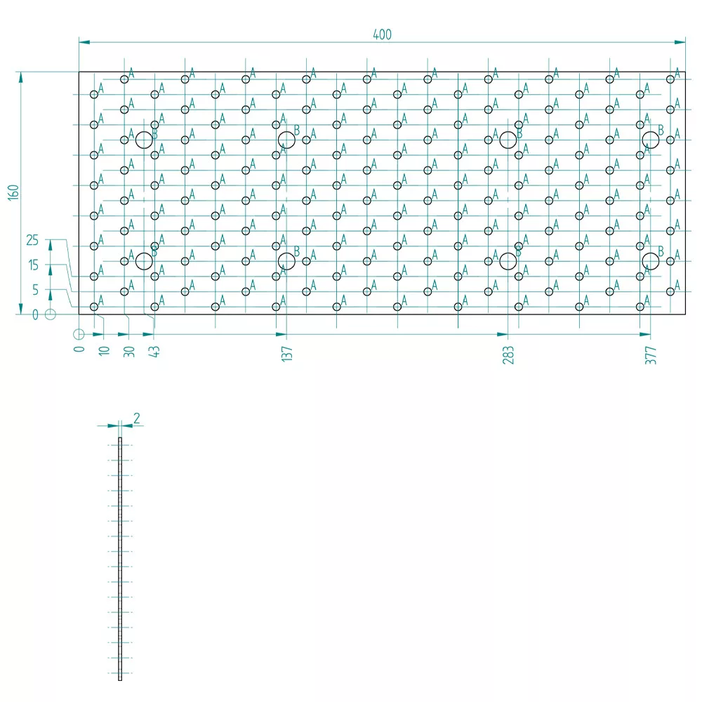 Furatok:∅5 mm: 160 db∅11 mm: 8 db