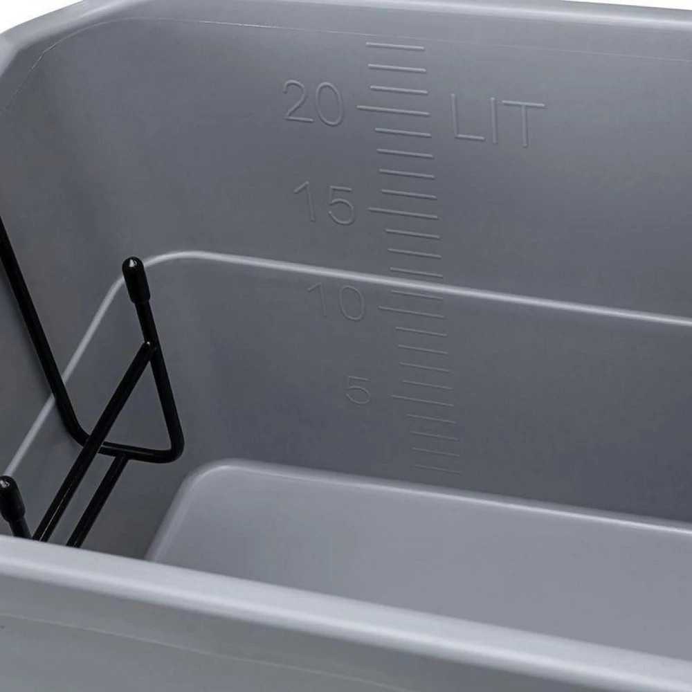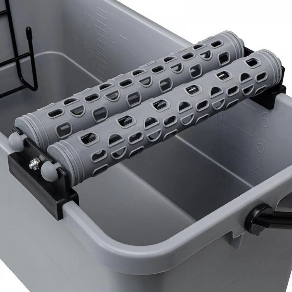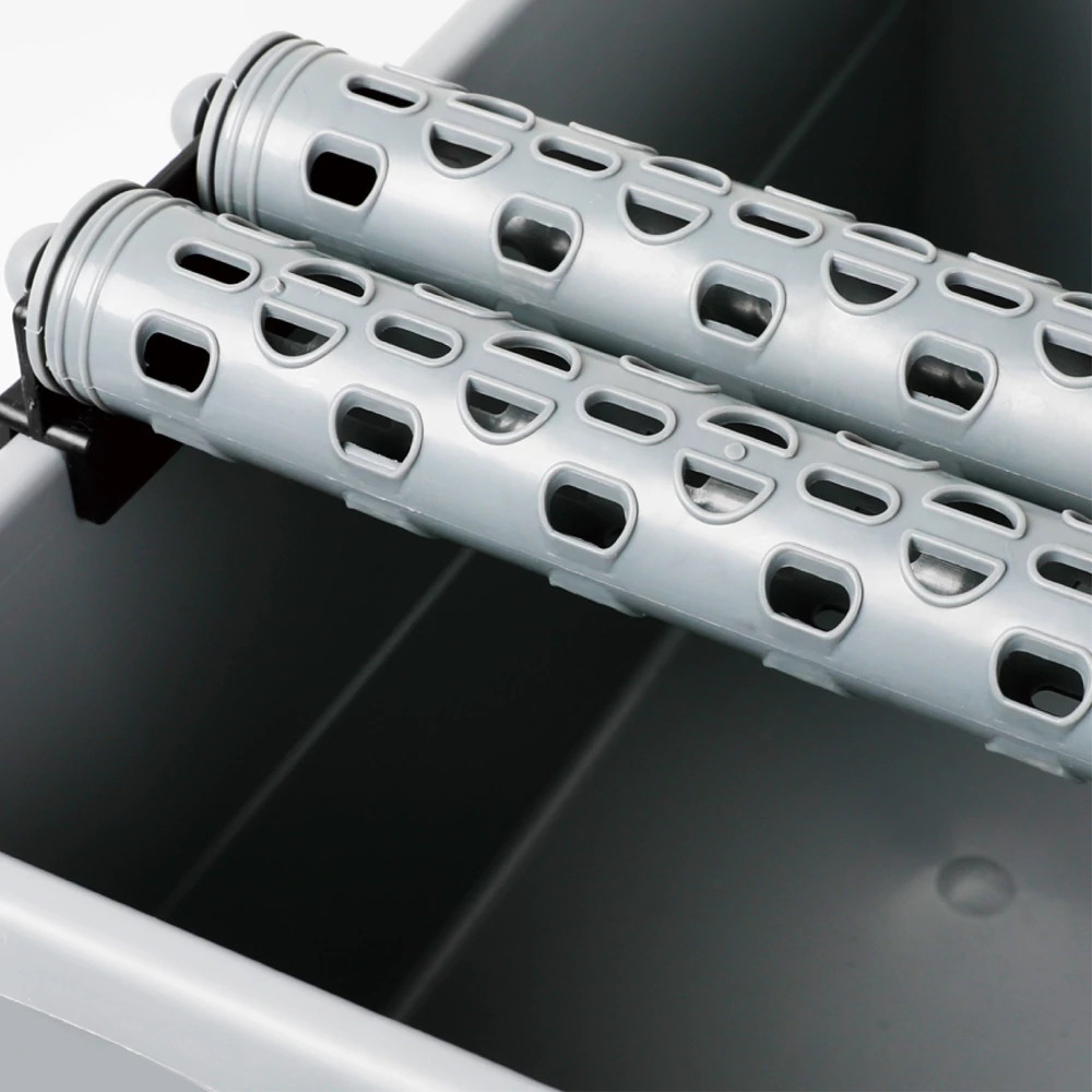 A négy forgó görgő lehetővé teszi a vödör könnyű mozgatását.