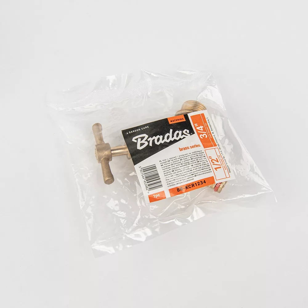 Sárgaréz kerti csap döntött kialakítással3/4"-os KM kimenet sárgaréz gyorscsatlakozóvalBemenet: KM - 1/2"