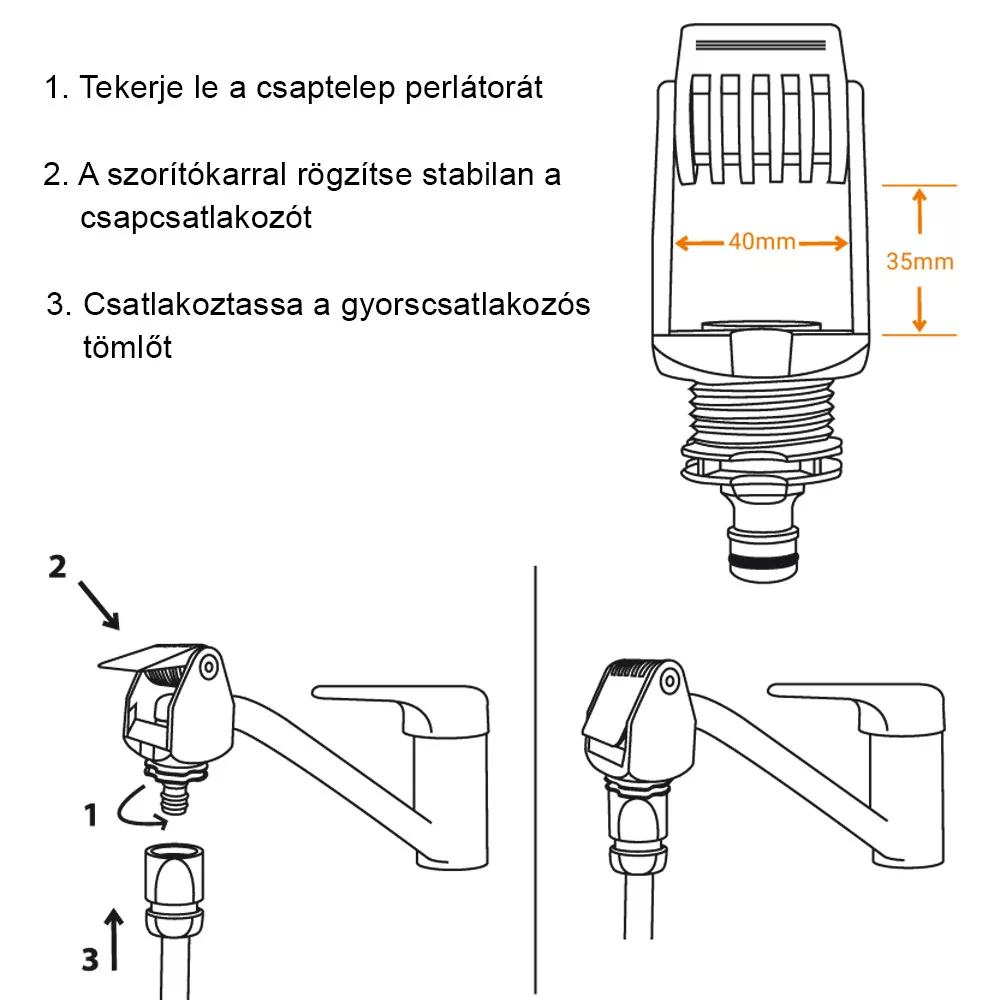 Menet nélkül rászorítható a kifolyócsőre (gyors és könnyű)