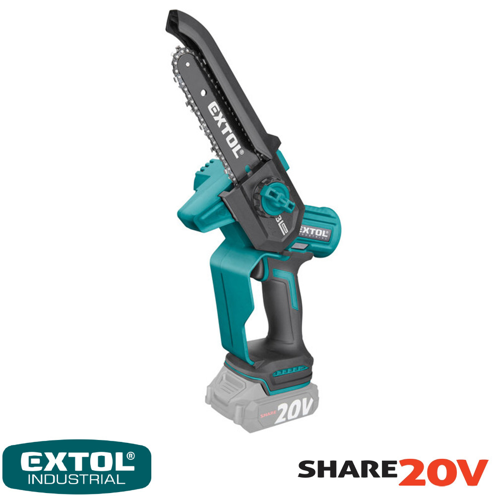 Az Extol Industrial SHARE20V egykezes akkus láncfűrész egy erőteljes és kompakt szerszám, amelyet fák metszésére, cserjék ápolására és rövid vágások készítésére terveztek a kertben vagy gyümölcsösben. Egykezes kialakításának köszönhetően ideális barkácsolás szerelmeseinek és szakembereknek, akiknek könnyű és könnyen használható gépre van szükségük.