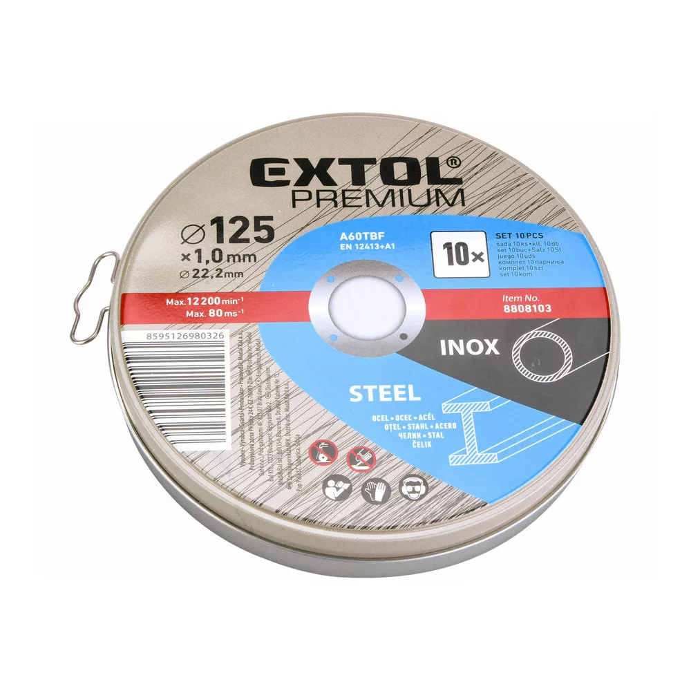 Extol Premium 8808103 vágókorong szett, acél-inox, fémdobozban (10 darab) - 125x1,0 x22,2 mm