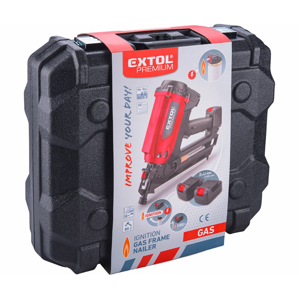 A szögbelövő működtetéséhez a kis súlyú patronból adagolt gázt a kis súlyú Li-ion akkumulátorról táplált gyújtógyertya szikrája robbantja be. A teljesen feltöltött akkumulátor kb. 5000 szög belövését teszi lehetővé. Ennek köszönhetően a könnyű szögbelövő készülék kiválóan használható gyakori szögezésekhez. A készülék ismétlődő használata kényelmes és nem okoz kézfáradtságot. A szögbelövő készüléket csak jól szellőző helyen szabad használni!