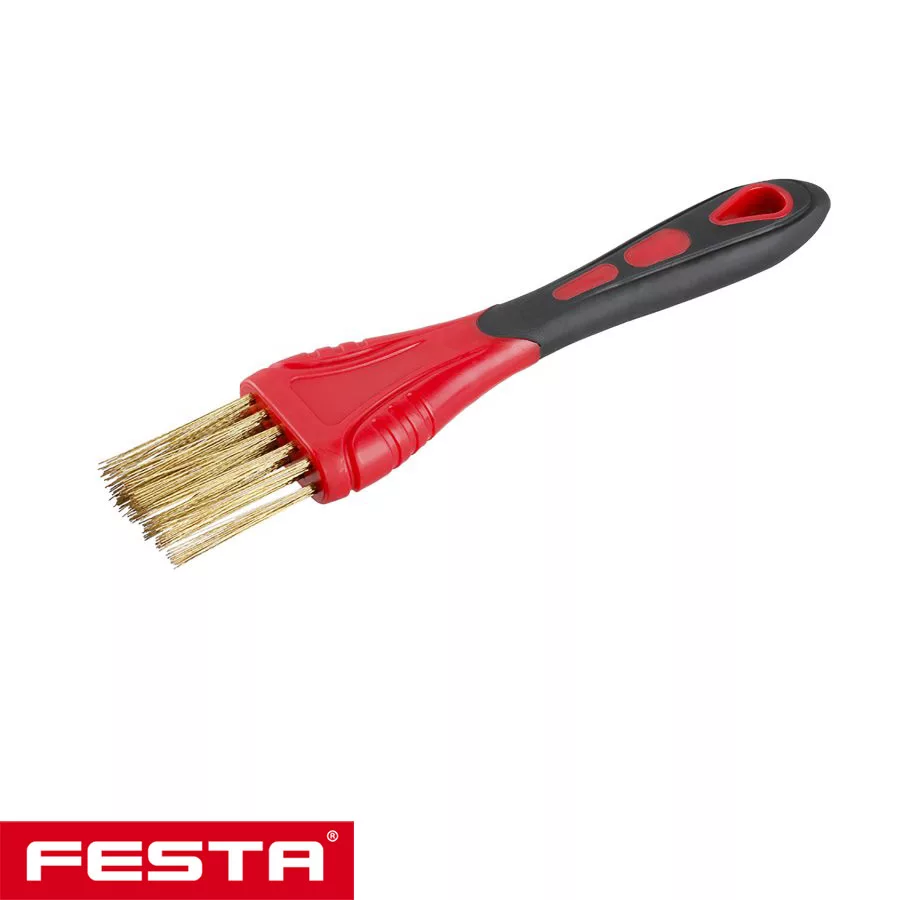 Drótkefe hézagok tisztítására, durva szennyeződések eltávolítására stb.Ergonomikus kétkomponensű gumírozott markolat - csúszásmentesEgyenes sárgaréz sörtékkel (2 soros)