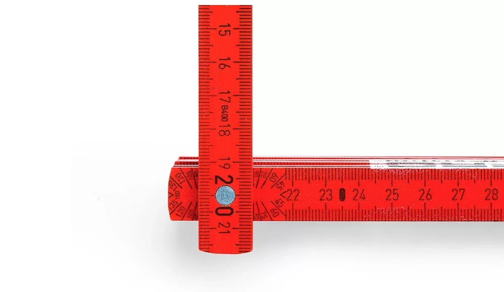 A második száron 15 fokonként jelölés a szögbeállításhoz