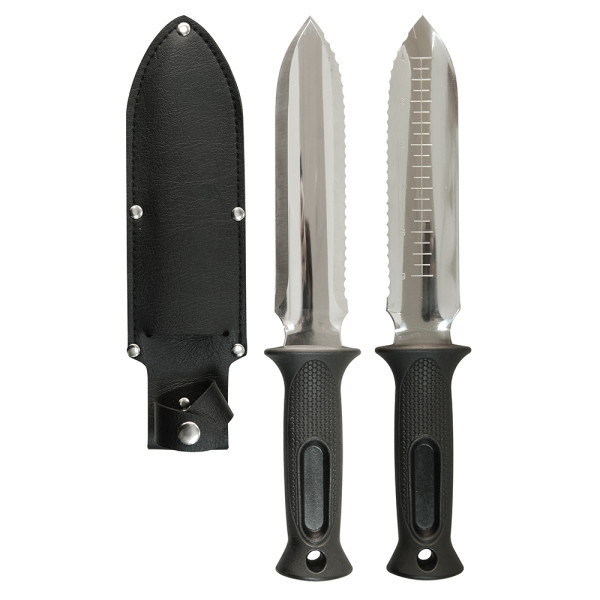 A penge fokozatos mélységjelzőkkel rendelkezik, amelyek jelzik a kertésznek a mélységet, valamint egy bőrtok is tartozik hozzá, amelyben a kést használaton kívül tárolhatja.