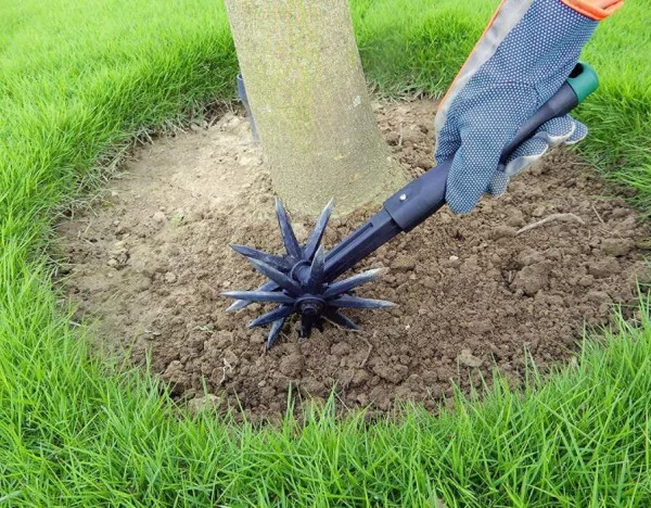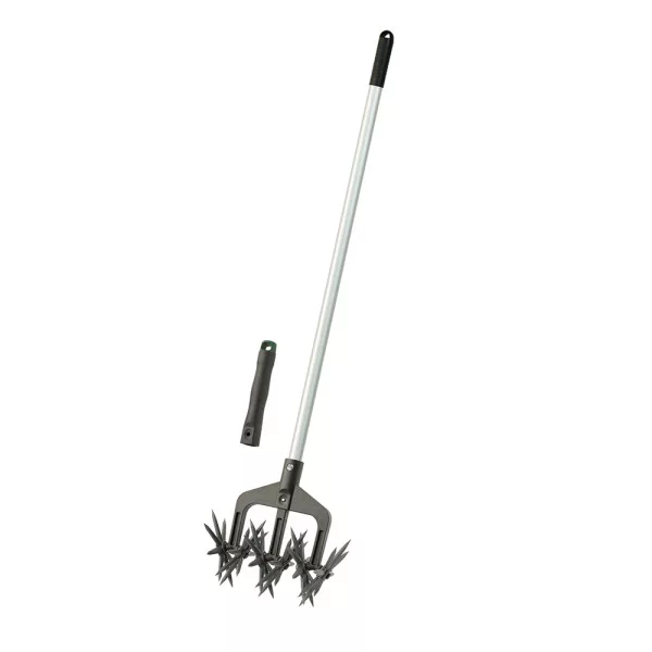 A csillag alakú tüskék fellazítják a földet, feltörik a kérges felszínt, és segítenek kitépni vagy elvágni a fiatal gyomokat.