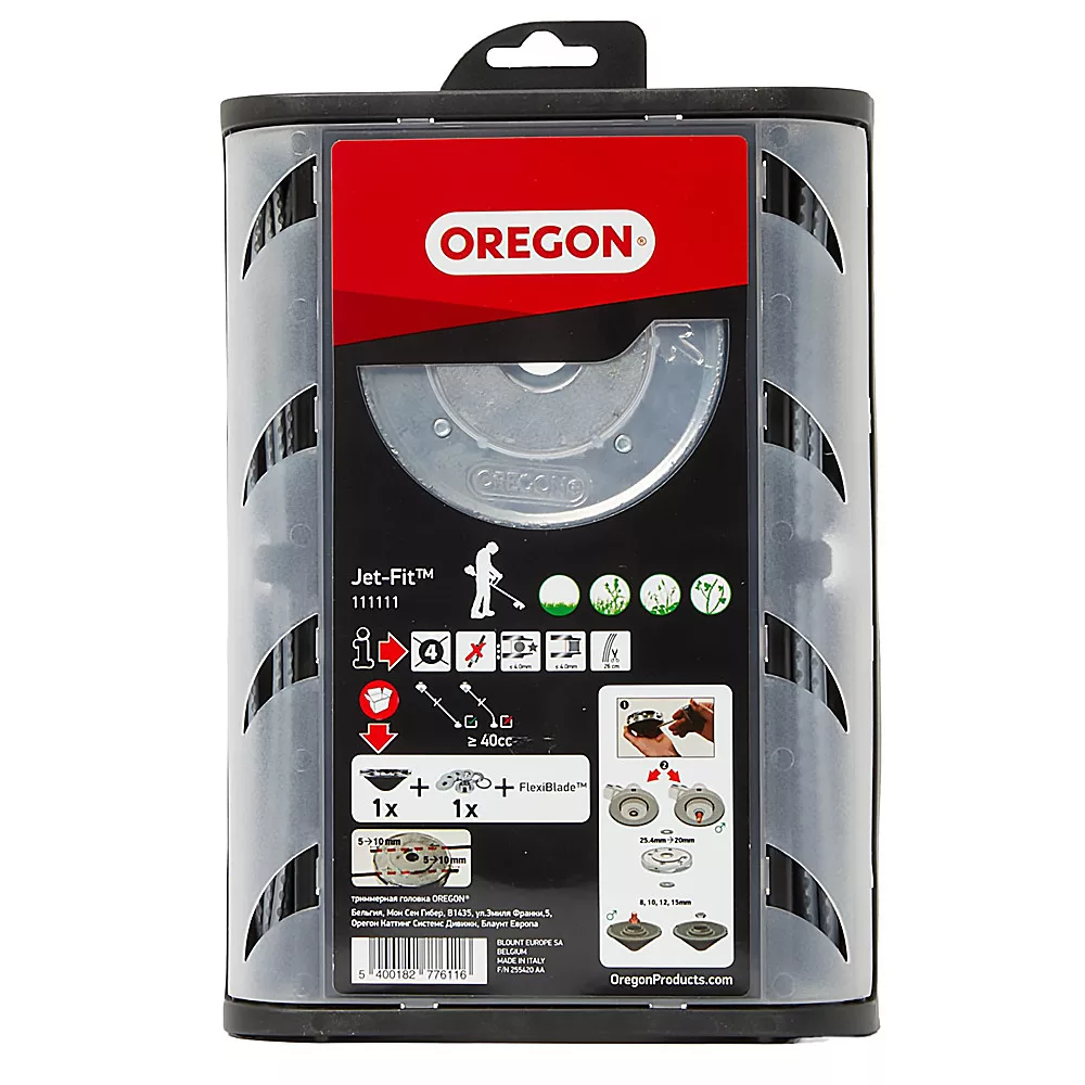Az alumínium Jet-fit™ fűnyírófej Oregon legerősebb feje. Minden Oregon vágószállal használható, beleértve a Techniblade™-et is. A fémháznak köszönhetően minden terepre illeszkedik.