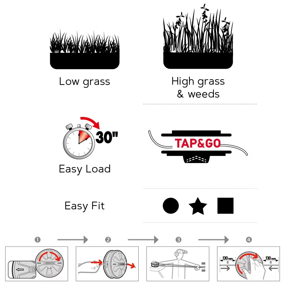 Tap-n-Go adagolás: munka közben koppintsa a fejet a földhöz és adagolódik a vágószál