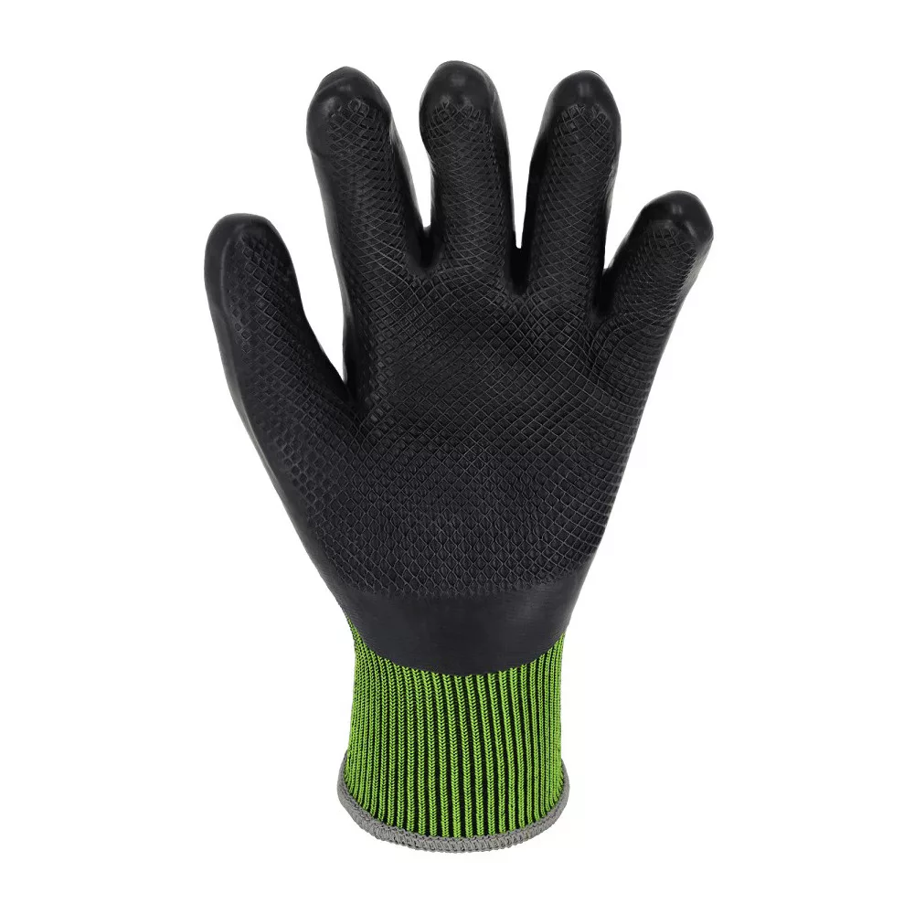 Strapabíró latex gumi mártás a tenyéren és ujjvégeken, rácsos mintázattal a jobb tapadásért
