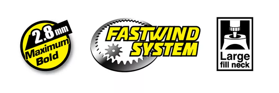 Az extra masszív ház hosszú távú megbízhatóságot biztosít, míg a FASTWIND fogaskerék hajtás az integrált nyélkioldóval lehetővé teszi a gyors feltekerést. A nagy oldalsó utántöltő nyílás a szorosan illeszkedő kupakkal megkönnyíti a kréta utántöltését.