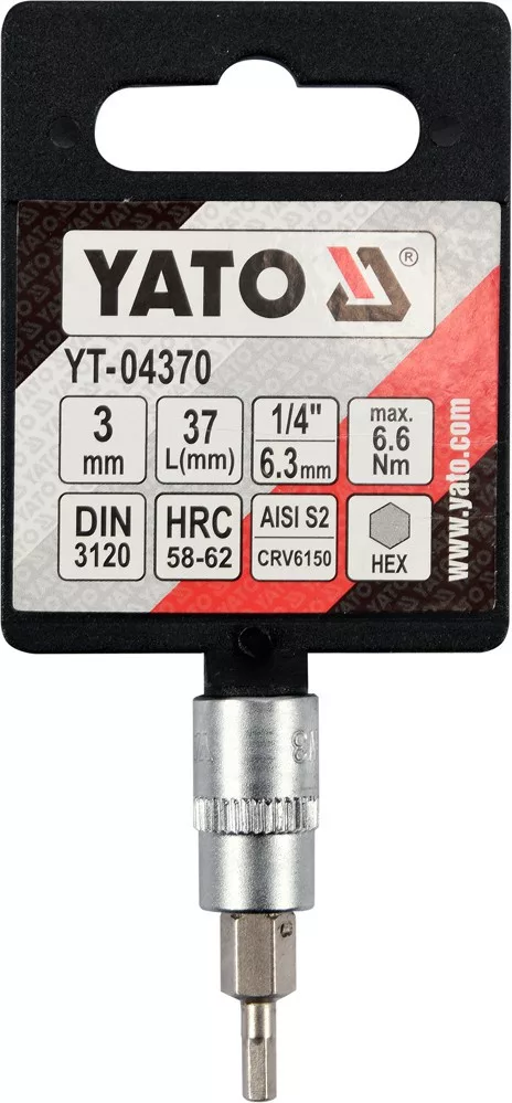 dugókulcs imbusz bit 1/4" (L=37mm)krómozott fogalalat CrV6150 acélból, bithegy AISI S2 acélból nikkelezveDIN3120HRC 58-62 keménység