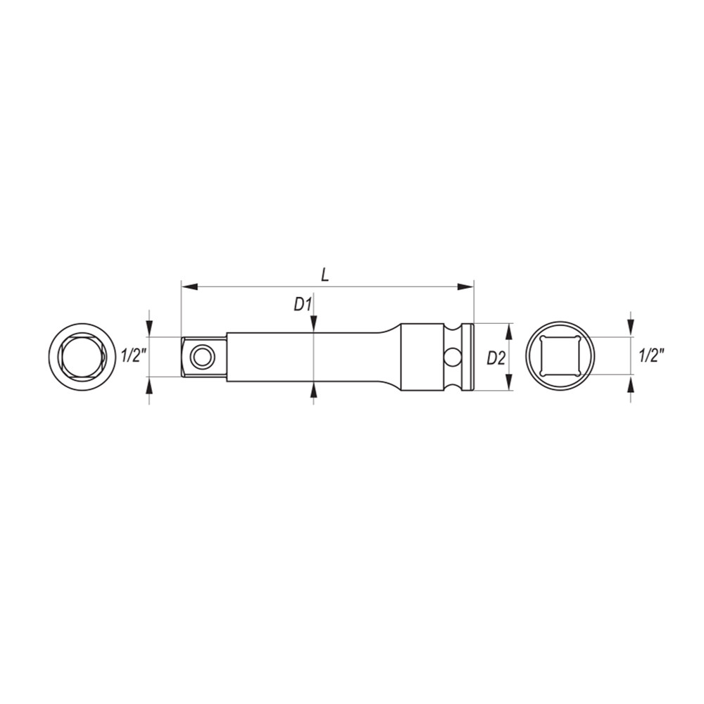 Gépi dugókulcs toldószár1/2" négyzetes befogásAnyag:CrMo-SCM440Feketére foszfátozott felület
