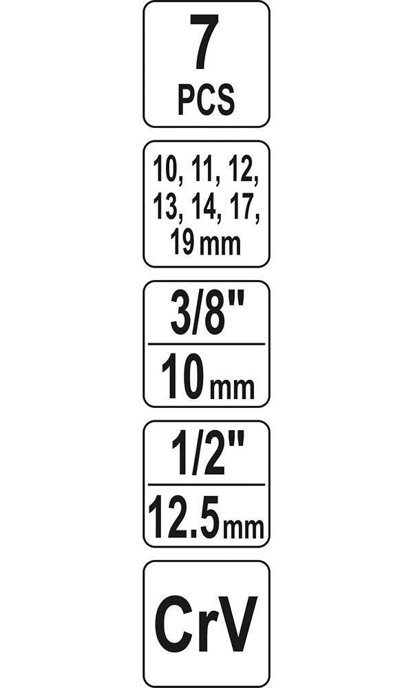 Méretek: 10, 11, 12, 13, 14, 17, 19 mm