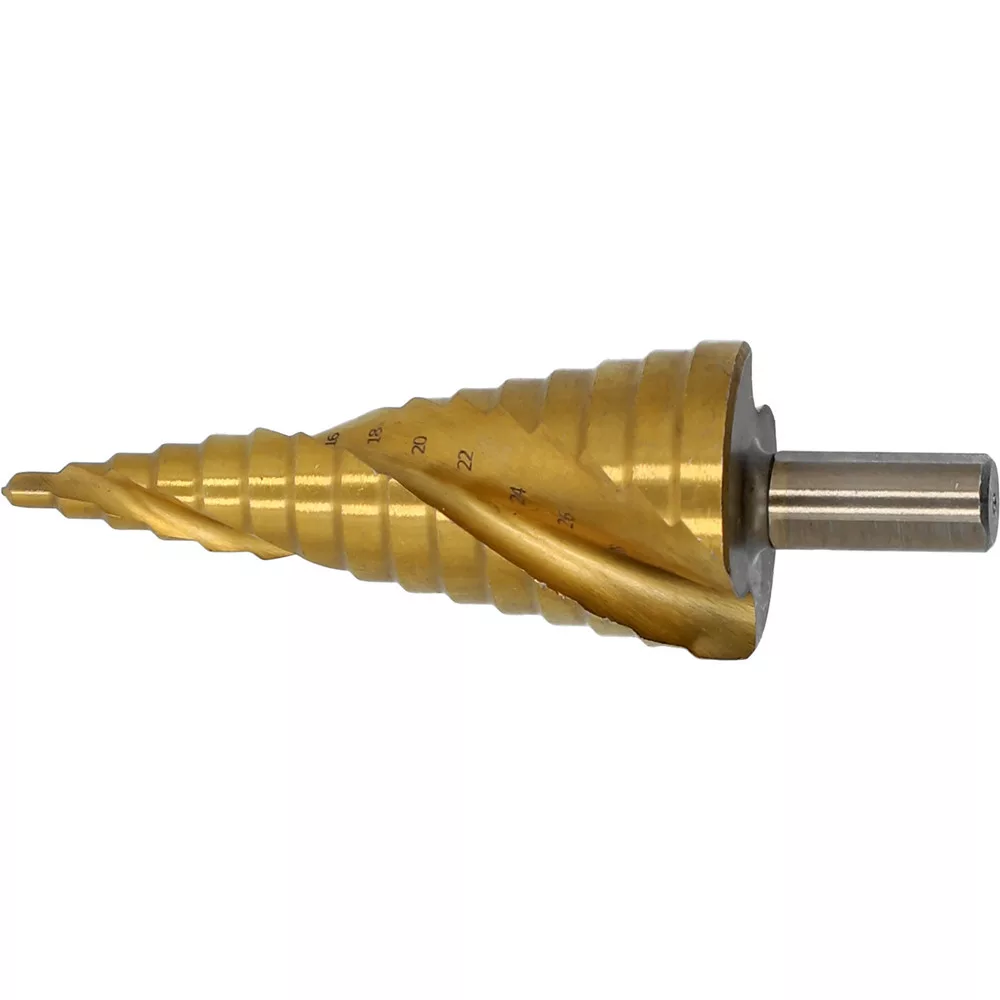 Spirál lépcsősfúró, amely rozsdamentes acélban, szerkezeti acélban, hidegen hengerelt acélban, színesfémekben, acéllemezekben és műanyagokban való fúráshoz készült