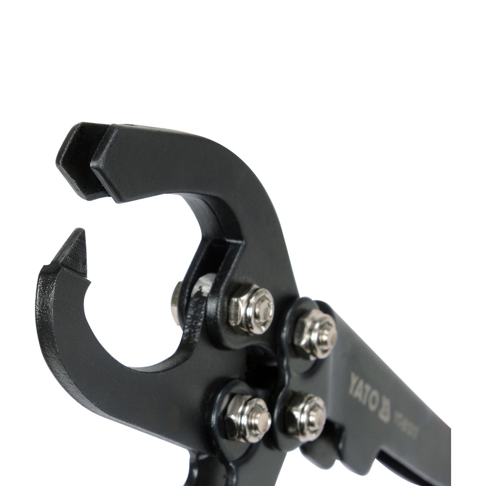 Speciális fogó, amelyet gipszkarton rendszerek profiljainak tartós és precíz összeillesztésére terveztek. Megkönnyíti és felgyorsítja a fém elemek csavarok vagy szegecsek nélküli összeillesztését. A kiváló minőségű acélból készült masszív konstrukció nagy szerelési hatékonyságot biztosít professzionális alkalmazásokban.
