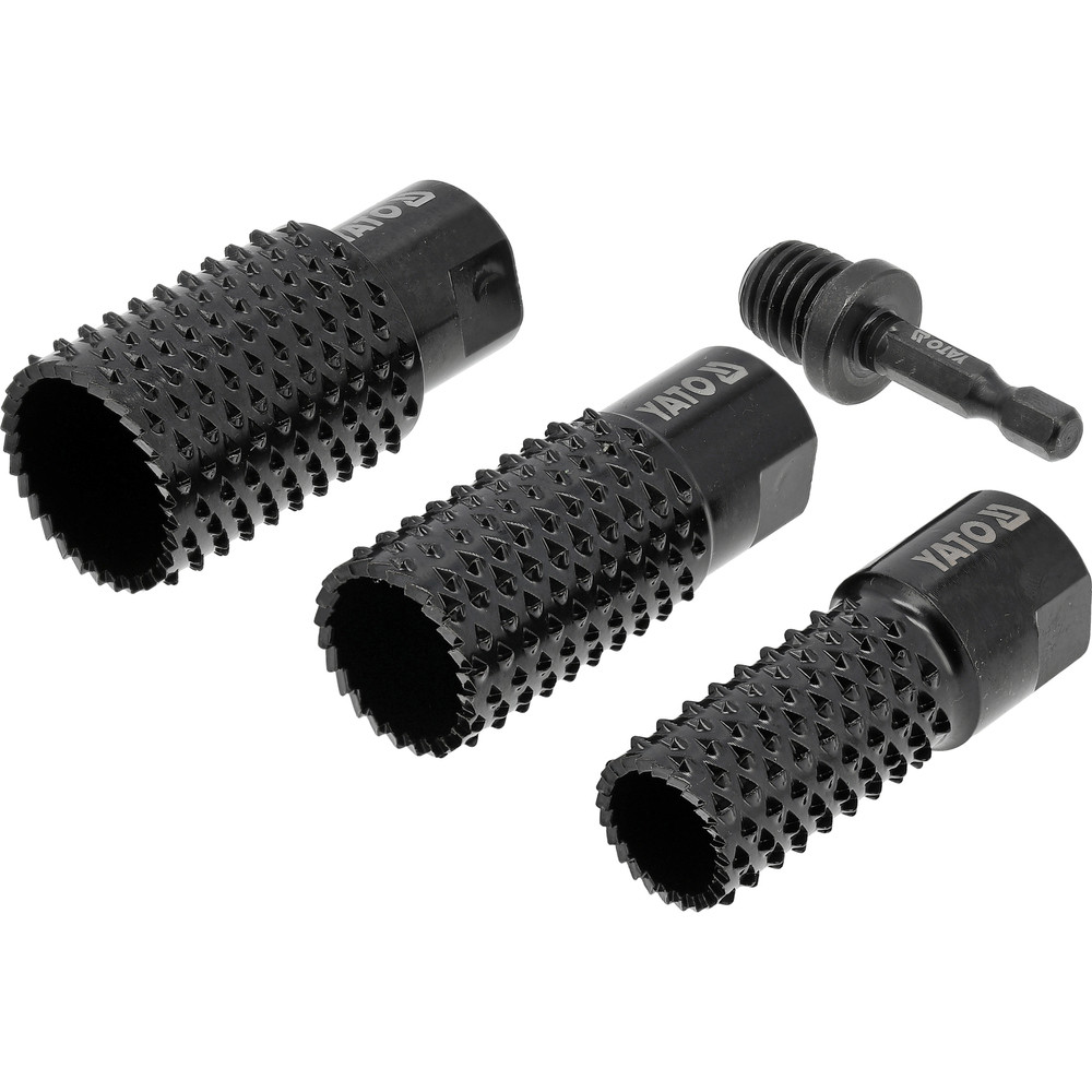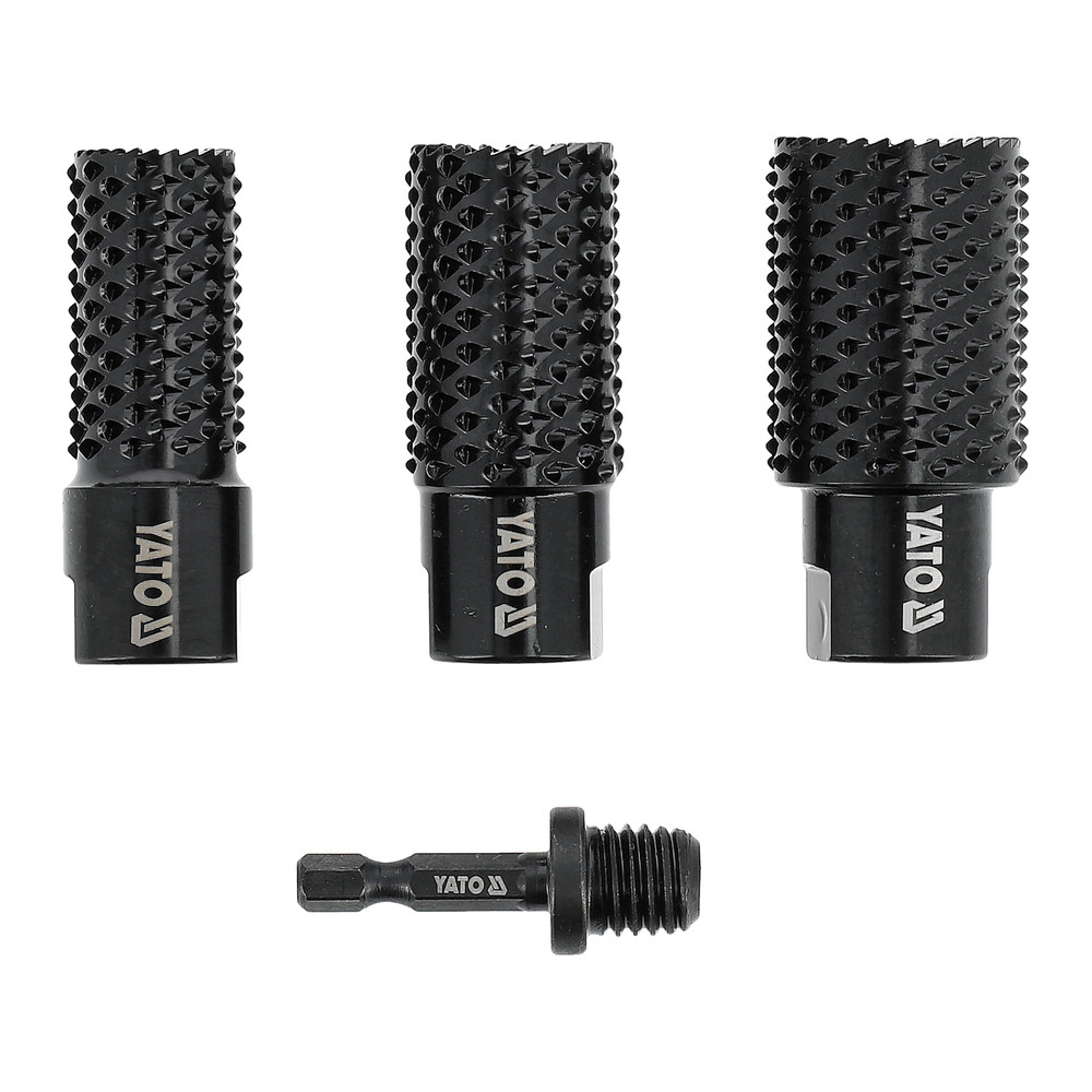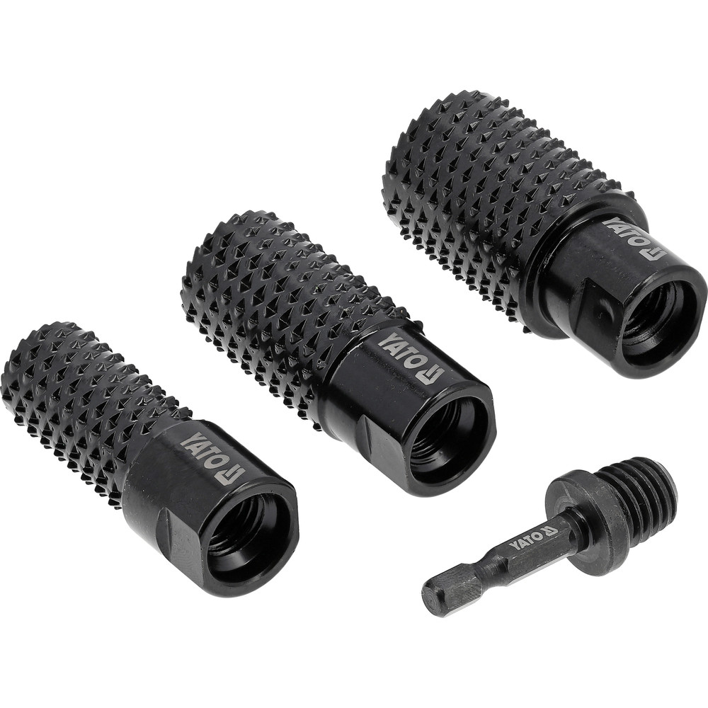 A HRC 40-50 keménységű szénacélból készült hengeres ráspoly szett nagy kopásállóságot és hosszú élettartamot biztosít. Az edzett és lakkozott felület védi a szerszámot a korróziótól. 20-25-30 mm átmérőjű és M14-es rögzítésű ráspolyok stabilan működik akár 12 500 fordulat/perc sebességgel, lehetővé téve a fa hatékony eltávolítását és formázását. Ideális famegmunkáláshoz műhelyben és asztalosmunkákhoz.