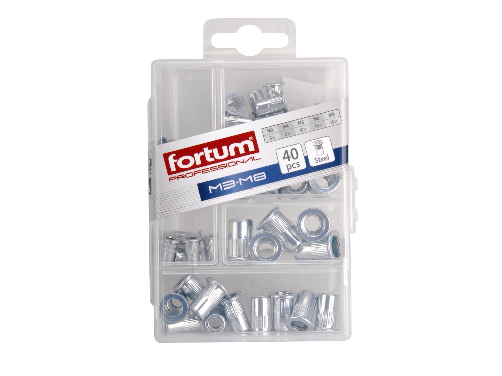 Fortum 4770682 szegecsanya készlet, M3-M8, 40 db-os